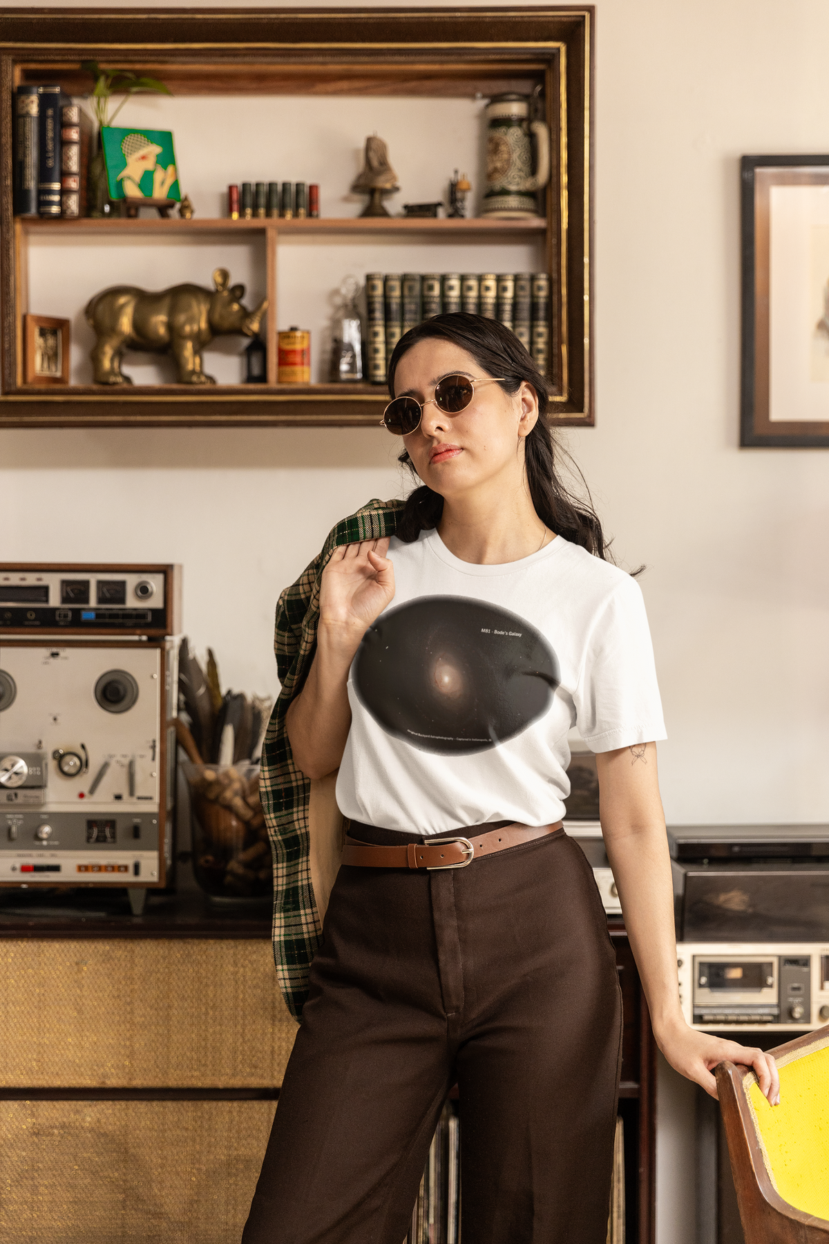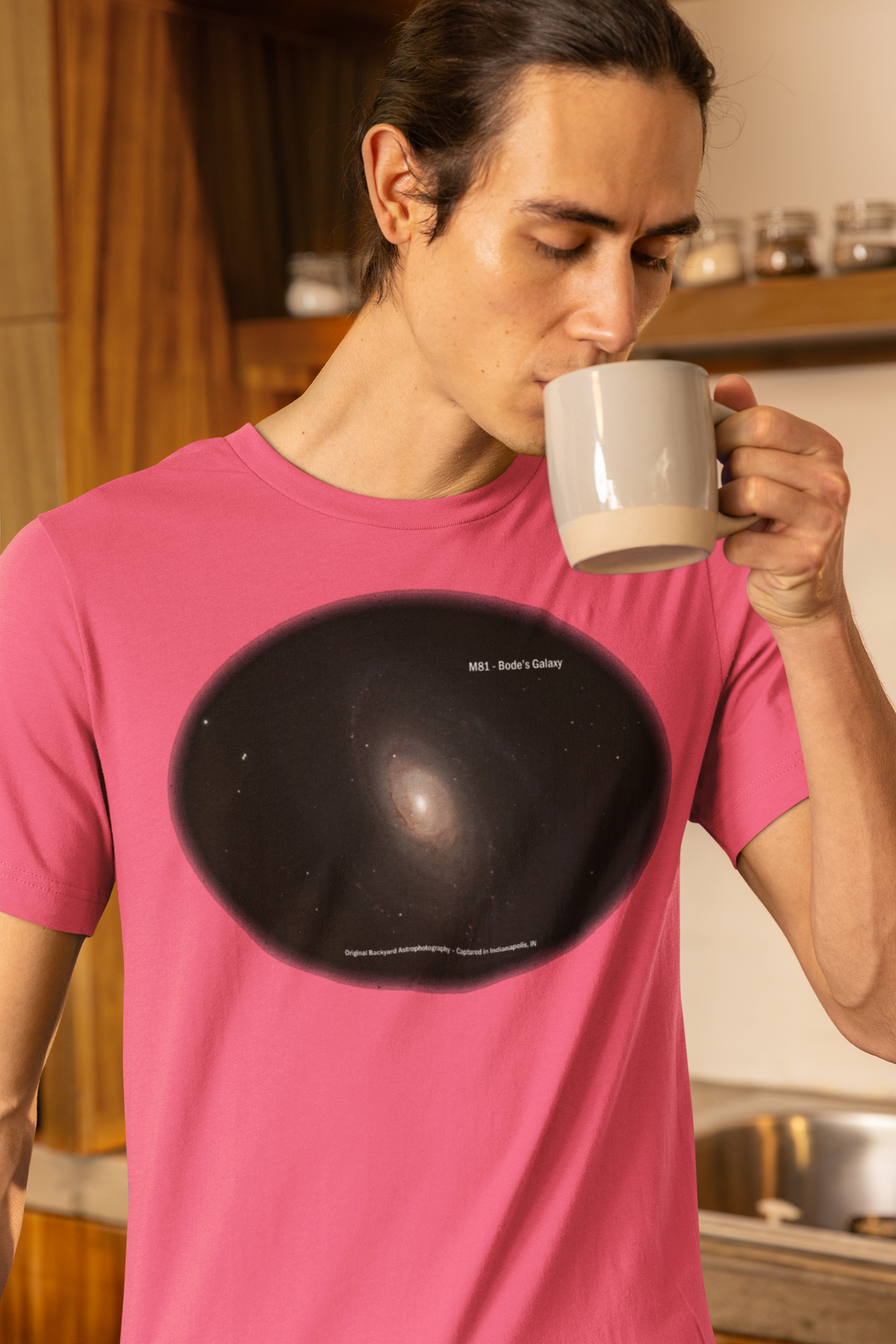 Bring a Real Galaxy to your wardrobe with this Bode’s Galaxy (Messier 81) t-shirt, featuring original backyard astrophotography captured in Indianapolis, IN. This stunning spiral galaxy, located 12 million light-years away, is printed in vivid detail on a soft, high-quality tee. Perfect for stargazers, science lovers, and fans of space-inspired fashion, it’s a stylish way to wear the cosmos. A stellar gift for dads, teachers, and anyone who dreams beyond the stars.