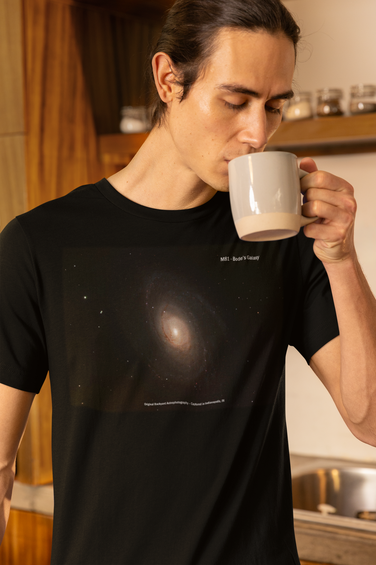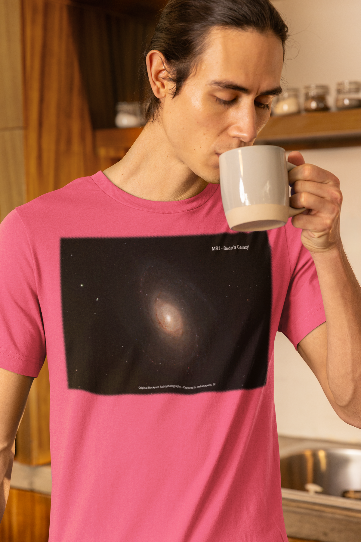 Bring a Real Galaxy to your wardrobe with this Bode’s Galaxy (Messier 81) t-shirt, featuring original backyard astrophotography captured in Indianapolis, IN. This stunning spiral galaxy, located 12 million light-years away, is printed in vivid detail on a soft, high-quality tee. Perfect for stargazers, science lovers, and fans of space-inspired fashion, it’s a stylish way to wear the cosmos. A stellar gift for dads, teachers, and anyone who dreams beyond the stars.