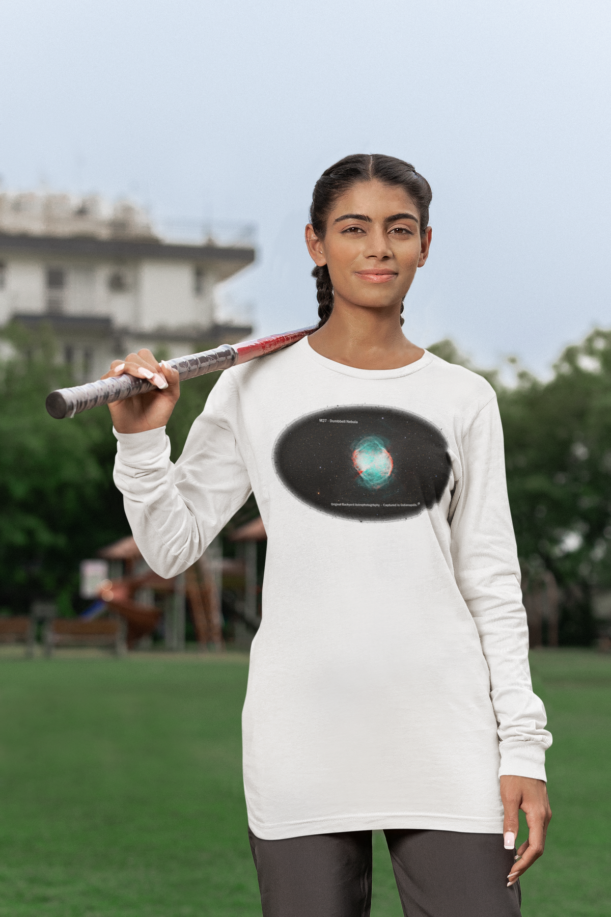 Who knew stellar death could look this good? This space-inspired t-shirt features the Dumbbell Nebula (Messier 27), a glowing cloud of gas from a dying star—captured through original backyard astrophotography. With vibrant deep space detail and soft, lightweight fabric, it’s perfect for astronomy lovers, science fans, and stargazers alike. A cosmic conversation starter for casual wear, science fairs, or planetarium visits.