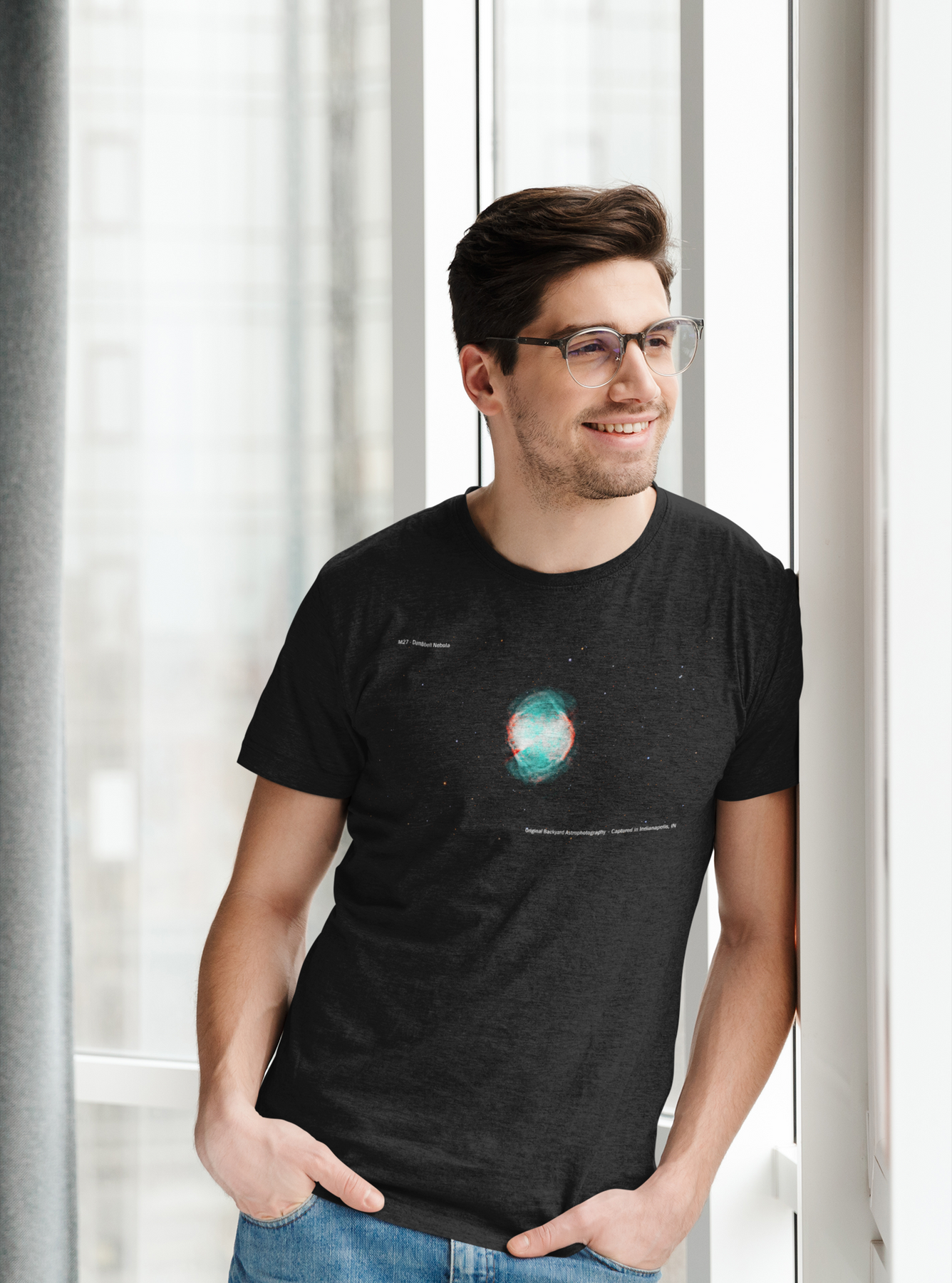 Bring deep space into sharp focus. This men’s premium heavyweight t-shirt features real astrophotography of the Dumbbell Nebula (Messier 27), one of the brightest planetary nebulae in the night sky. Crafted from soft, durable ring-spun cotton, it offers a structured and comfortable fit you can count on. Whether worn alone or layered, it’s the perfect way to showcase your cosmic curiosity. Makes a unique and thoughtful gift for dads, astronomers, and anyone who loves the mysteries of the universe.