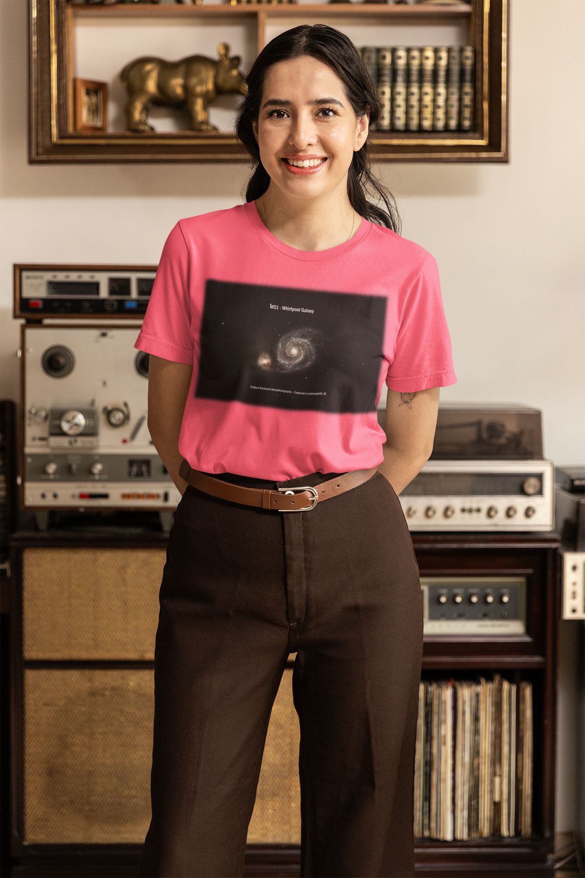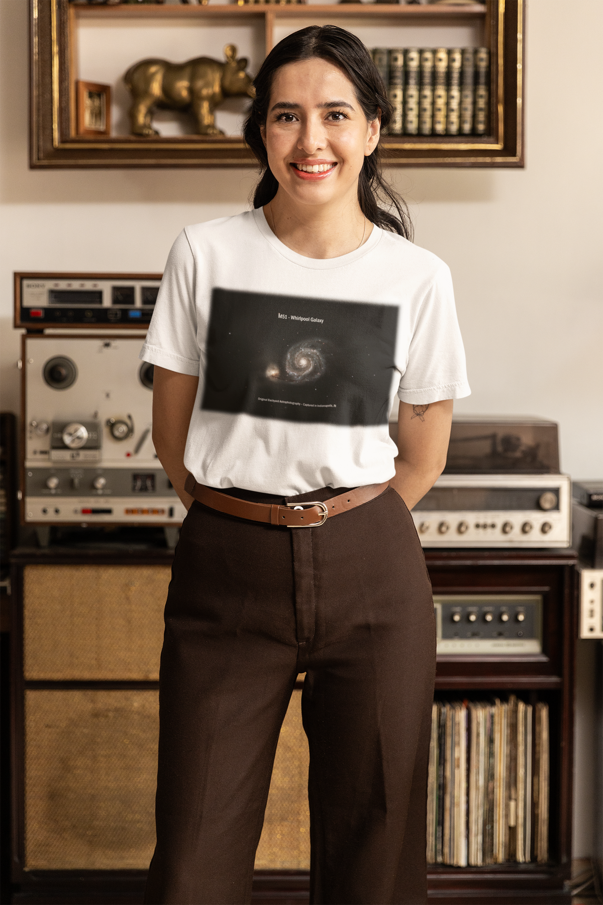 Get caught in a cosmic current with this unisex t-shirt featuring original astrophotography of Messier 51, the iconic Whirlpool Galaxy. Known for its dramatic spiral arms and galactic dance with a companion galaxy, M51 is a stunning symbol of cosmic beauty and chaos. Printed on a soft, comfortable tee, it’s perfect for astronomy lovers, science fans, and anyone who wants to wear the universe. A stellar gift for birthdays, Father’s Day, or your favorite stargazer.